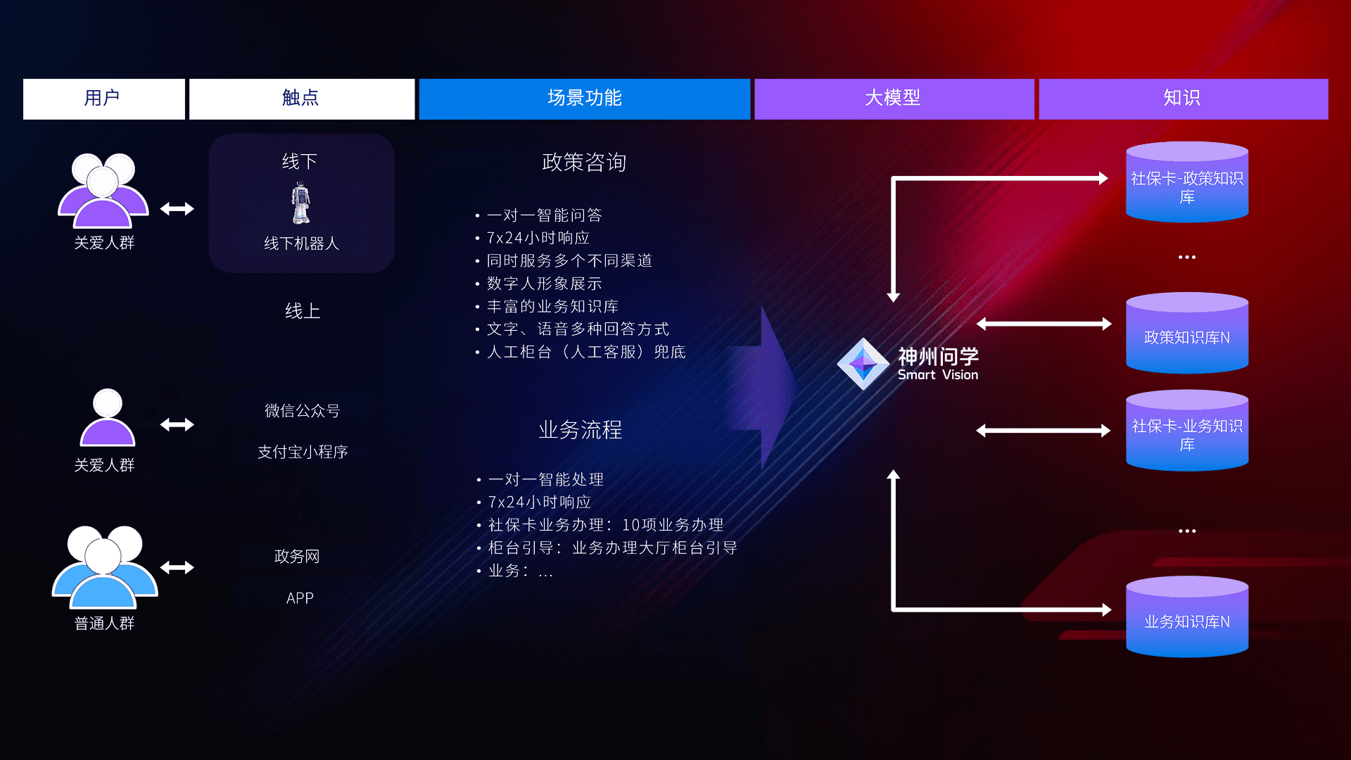 • 线上线下全覆盖:线上提供微信公众号、、、支付宝小程序、、、政务网、、app多种渠道,,,与线下机器人形成完整服务体系。。。